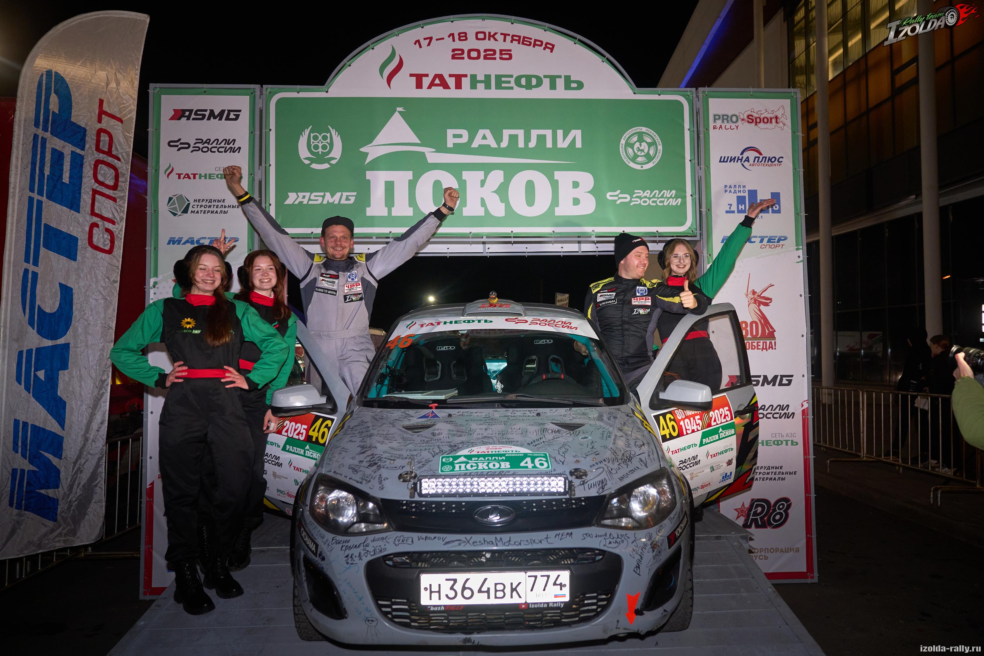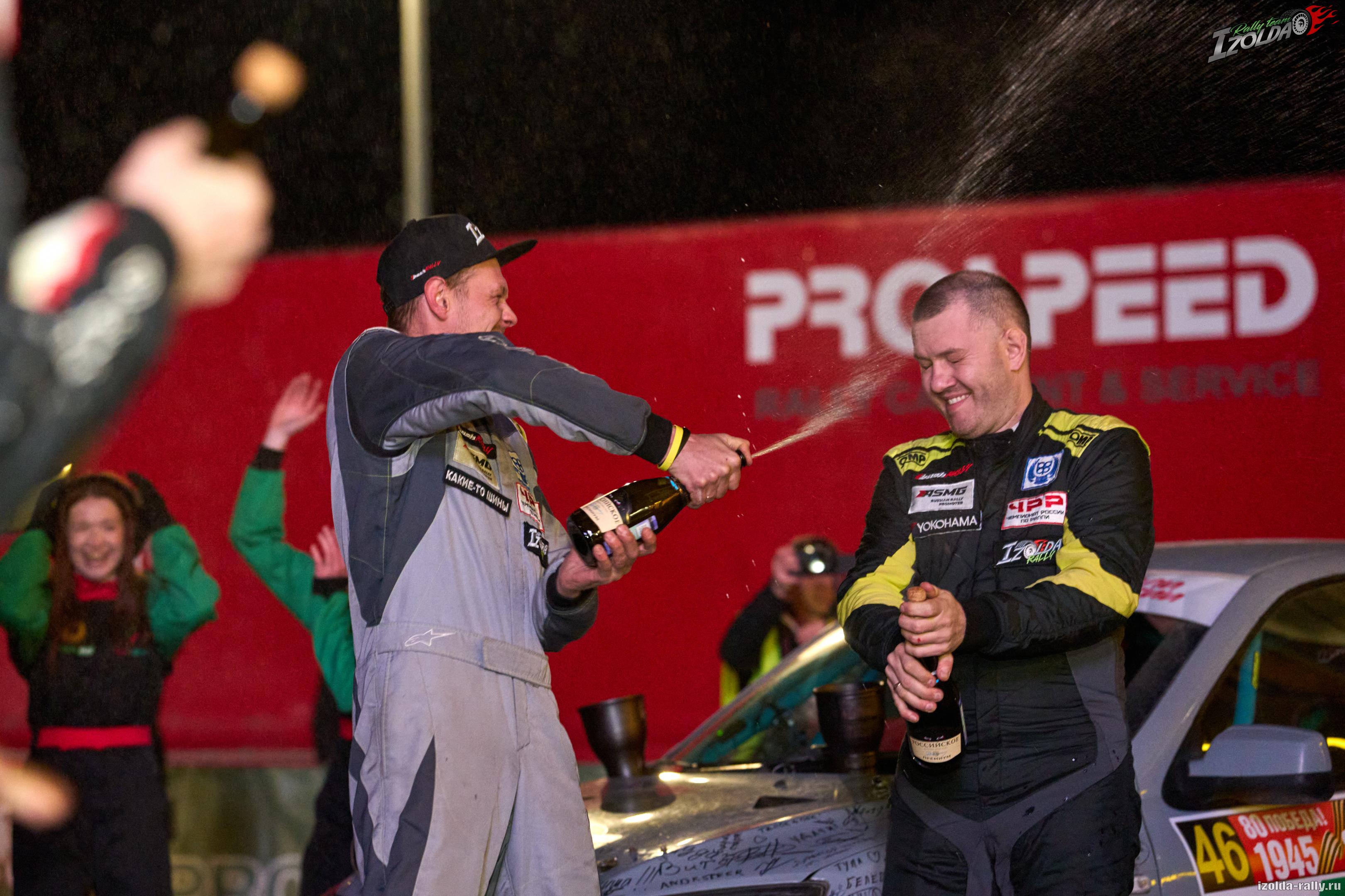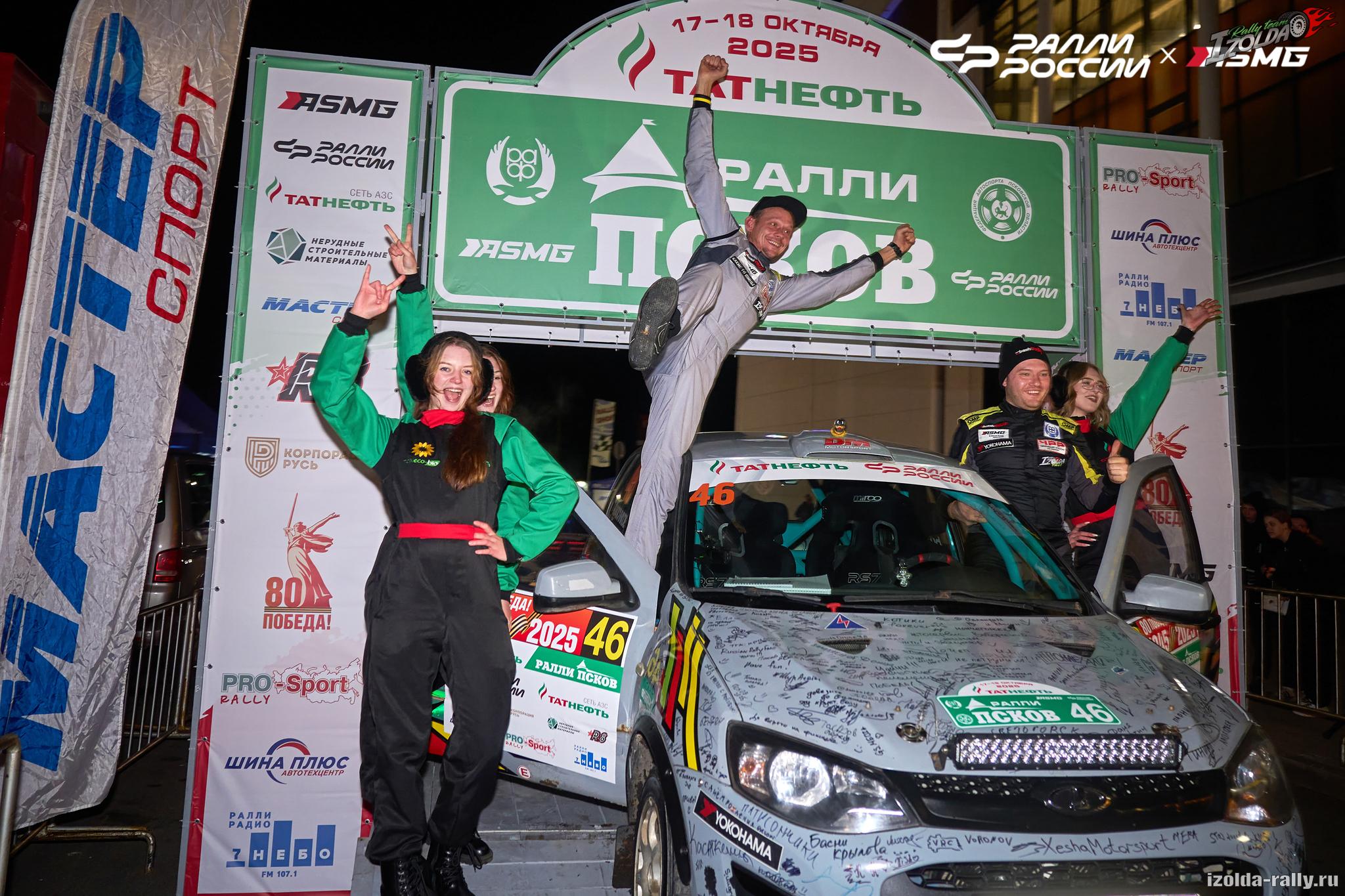 Ну а дальше, счастливый конец, финишная арка, брызги шампанского, кубки, вечернее афтерраллипати, и вот мы едем счастливые домой. Ралли удалось! Наверно лучше результата нам бы и не достичь. Впереди нас неплохие пилоты, на современных хороших автомобилях, которым не зазорно и проиграть на нашей калине, так что мы ничуть не расстроены, а точнее даже рады, как прошло наше Ралли "Псков 2025".